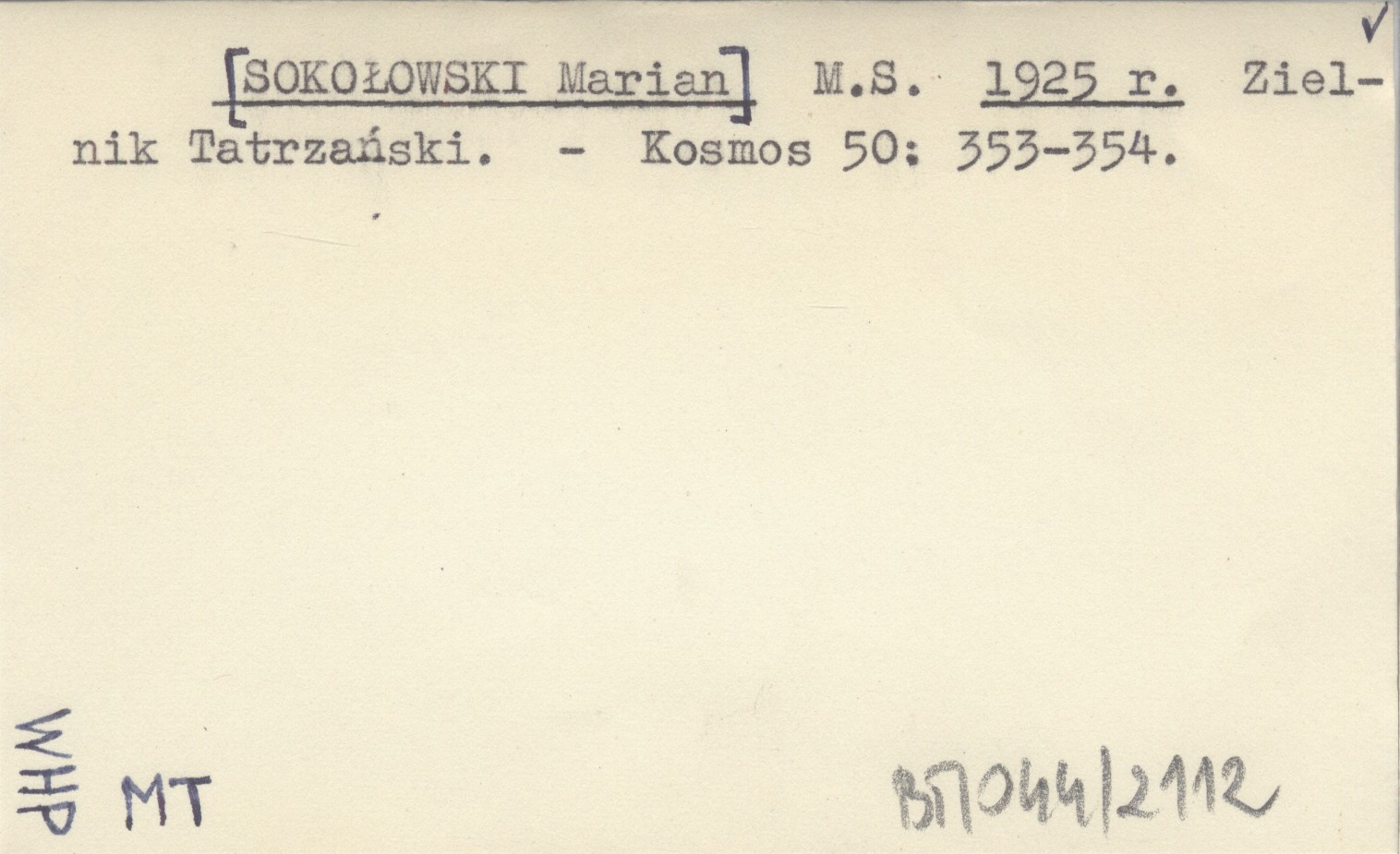 M. S. [SOKOŁOWSKI Marian] 1925 r Zielnik Tatrzański.
