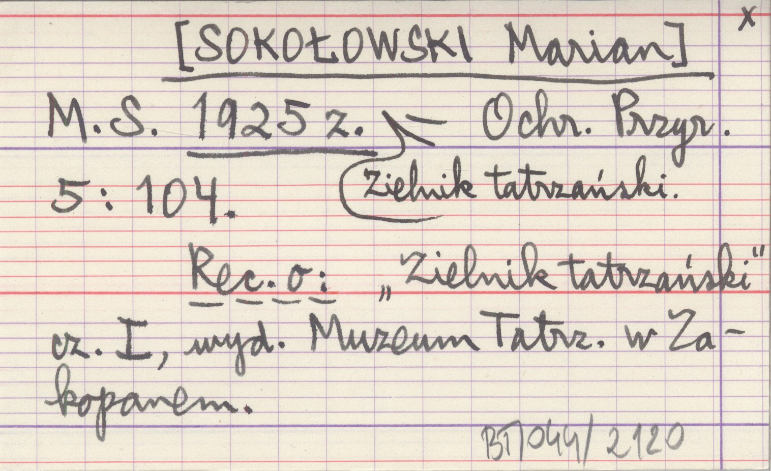 Ochrona Przyrody, 5: 104. Recenzja o: "Zielnik Tatrzański" cz. I, wyd. Muzeum Tatrzańskie w Zakopanem.