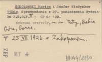 SOKOŁOWSKI Marjan SZAFER, Władysław. ; 1926 c Sprawozdanie z 27. posiedzenia Wydziału P.R.O.P. 25 VII 1926 w Zakopanem.