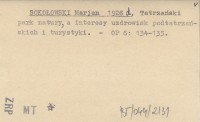 SOKOŁOWSKI Marjan 1926 d Tatrzański park natury, a interesy uzdrowisk podtatrzańskich i turystyki.