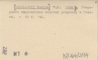 M. S. [SOKOŁOWSKI Marjan] 1926 g Propaganda zagraniczna ochrony przyrody w Polsce.