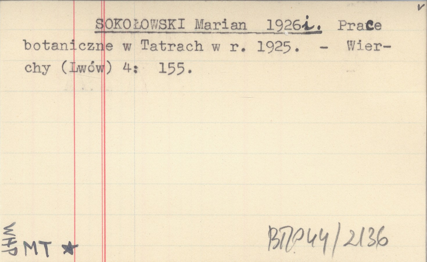 SOKOŁOWSKI Marian 1926 i Prace botaniczne w Tatrach w r. 1925.
