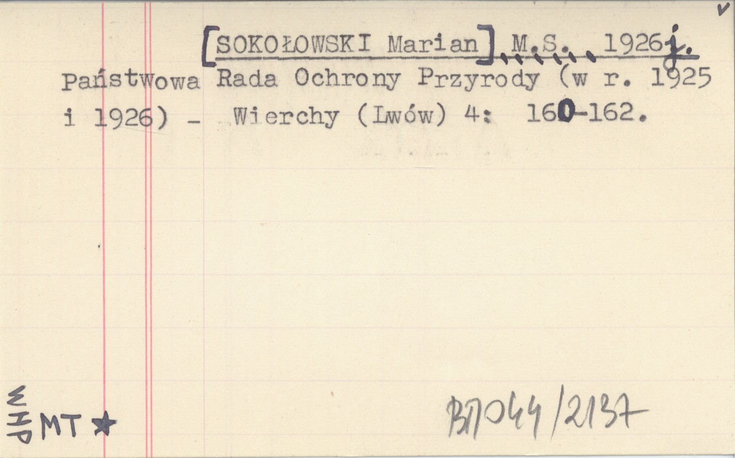 M. S. [SOKOŁOWSKI Marian] 1926 j Państwowa Rada Ochrony Przyrody (w r. 1925 i 1926).