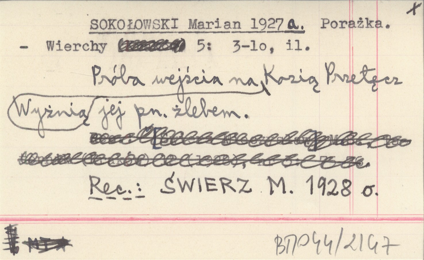 Wierchy, 5: 3-10, il. Próba wejścia na Wyżnią Kozią Przełęcz jej pn. żlebem. REC: ŚWIERZ M. 1928 o