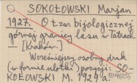 SOKOŁOWSKI Marjan 1927 O t.zw. bijologicznej górnej granicy lasu w Tatrach.