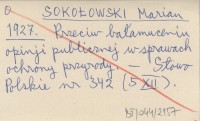 SOKOŁOWSKI Marian 1927 Przeciw bałamuceniu opinji publicznej w sprawach ochrony przyrody.