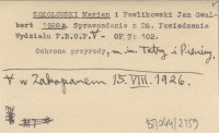 SOKOŁOWSKI Marjan PAWLIKOWSKI, Jan Gwalbert. ; 1928 a Sprawozdanie z 28. Posiedzenia Wydziału P.R.O.P. w Zakopanem 15 VIII 1926.