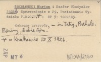 SOKOŁOWSKI Marian SZAFER, Władysław. ; 1928 b Sprawozdanie z 29. Posiedzenia Wydziału P.R.O.P. w Krakowie 15 X 1926.