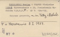 SOKOŁOWSKI Marjan SZAFER, Władysław. ; 1928 d Sprawozdanie z 32. Posiedzenia Wydziału P.R.O.P. w Warszawie 8 I 1927.