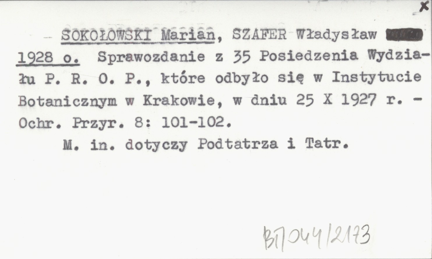 SOKOŁOWSKI Marian SZAFER, Władysław. ; 1928 o Sprawozdanie z 35 Posiedzenia Wydziału P.R.O.P., które odbyło się w Instytucie Botanicznym w Krakowie, w dniu 25 X 1927 r.