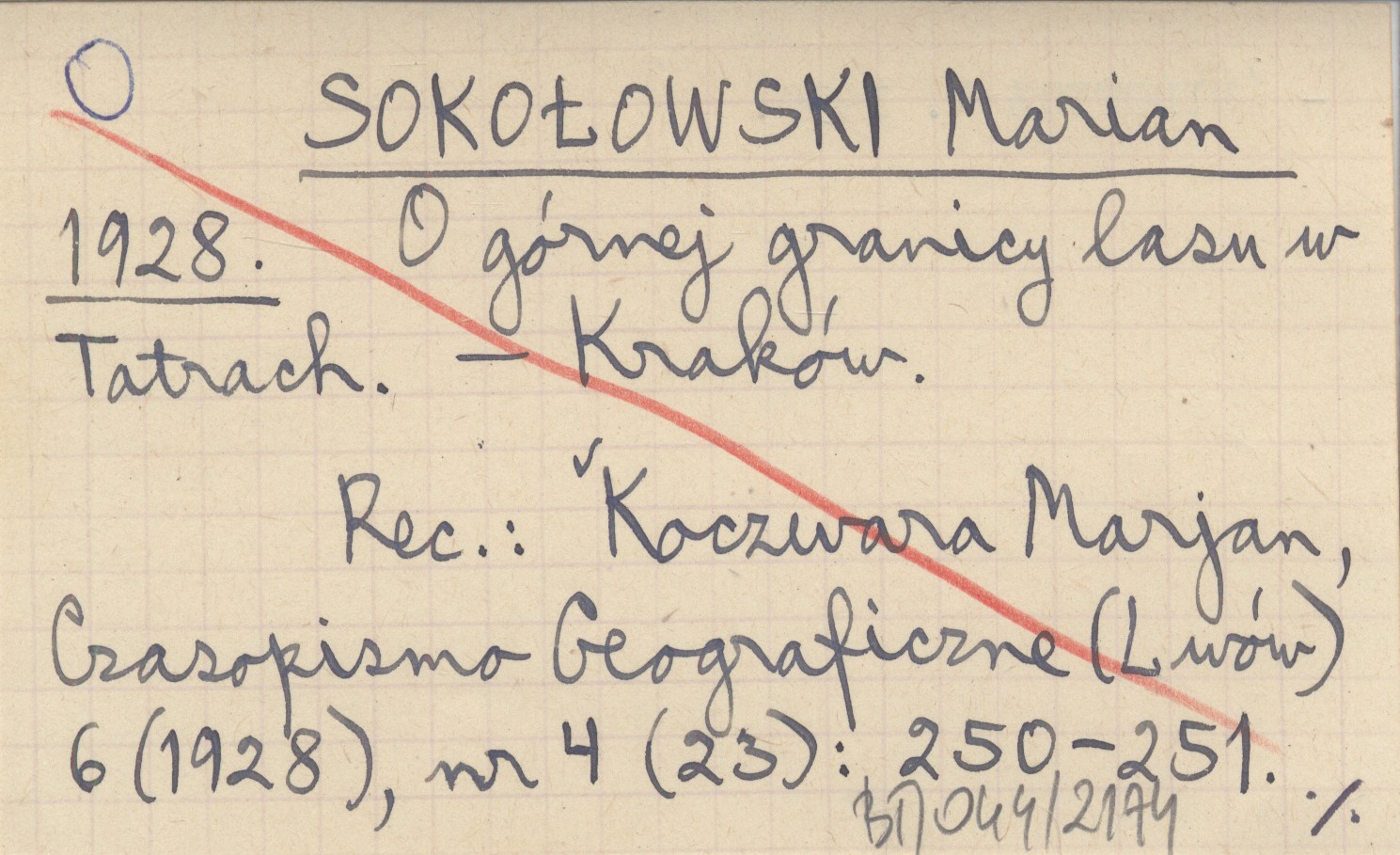 SOKOŁOWSKI Marian 1928 O górnej granicy lasu w Tatrach.