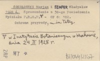 SOKOŁOWSKI Marian SZAFER, Władysław. ; 1928 o Sprawozdanie z 35 Posiedzenia Wydziału P.R.O.P., które odbyło się w Instytucie Botanicznym w Krakowie, w dniu 25 X 1927 r.