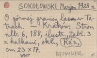 SOKOŁOWSKI Marjan 1928 n O górnej granicy lasu w Tatrach.