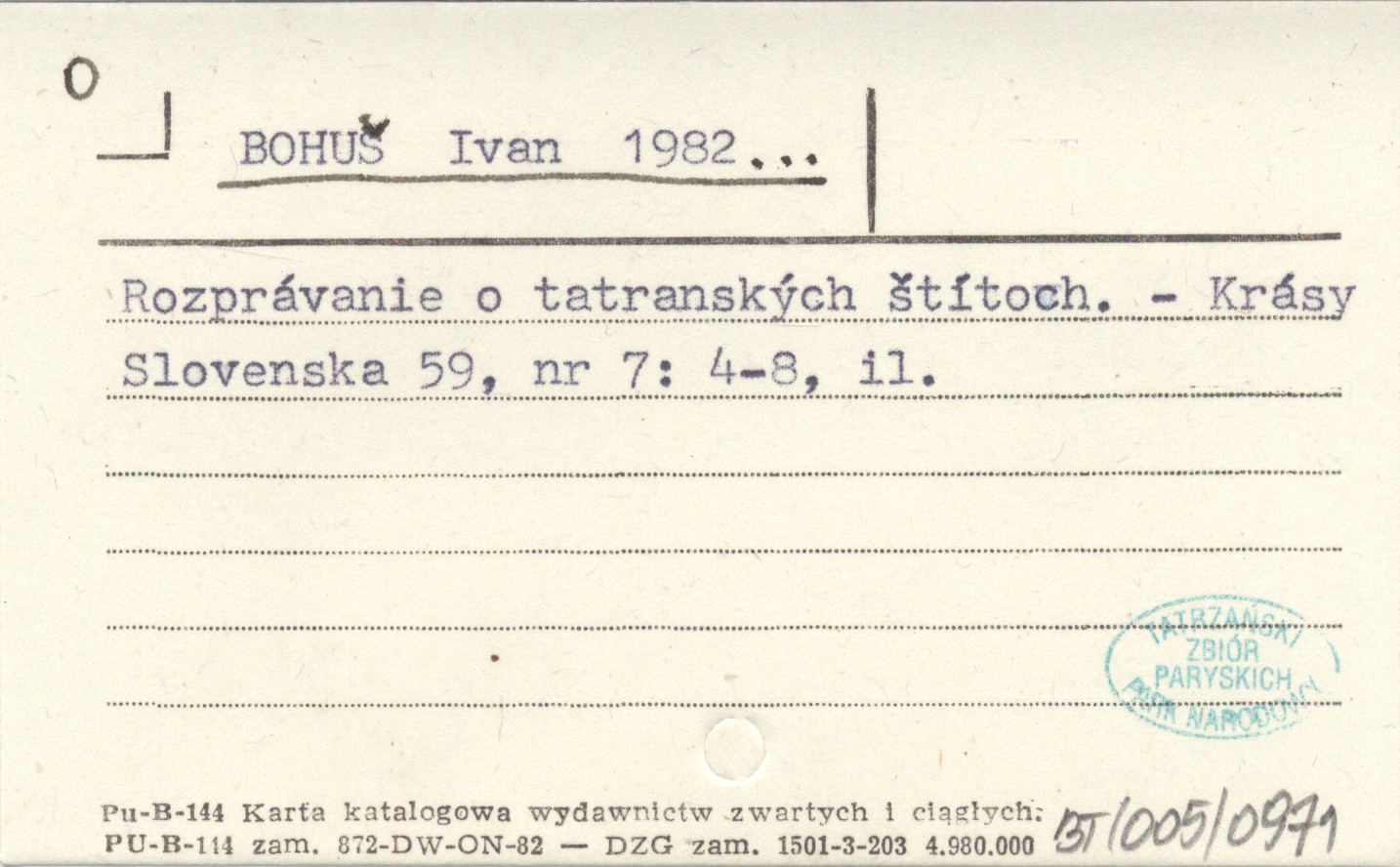Projekt Digitalizacja fiszek z Bibliografi± Tatr i Podtatrza Witolda Henryka Paryskiego jest finansowany ze ¶rodków Ministra Kultury i Dziedzictwa Narodowego oraz Tatrzańskiego Parku Narodowego.
