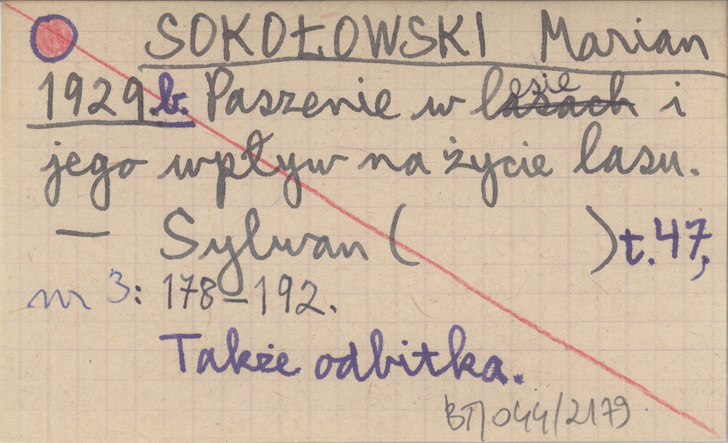 SOKOŁOWSKI Marian 1929 b Paszenie w lesie i jego wpływ na życie lasu.
