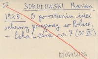 SOKOŁOWSKI Marian 1928 O powstaniu idei ochrony przyrody w Polsce.