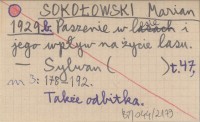 SOKOŁOWSKI Marian 1929 b Paszenie w lesie i jego wpływ na życie lasu.