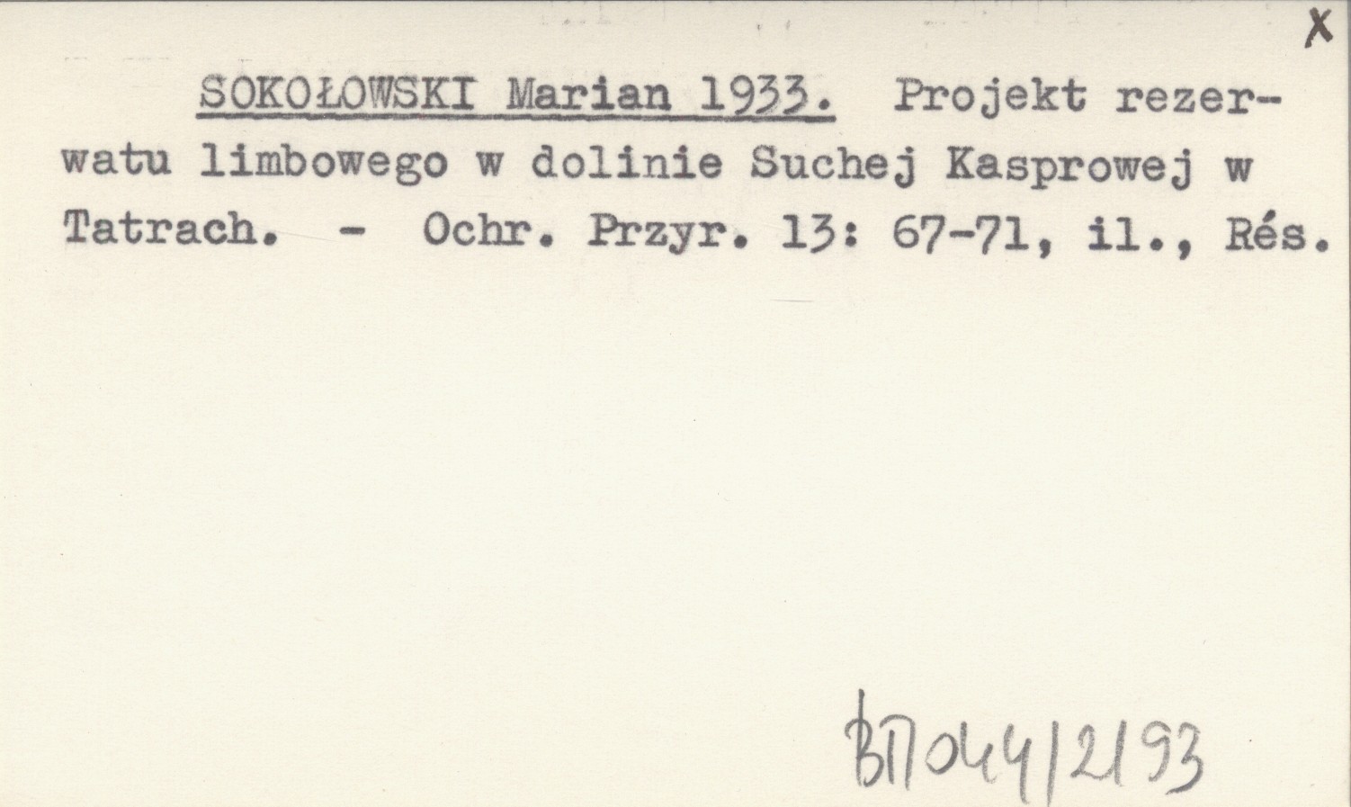 SOKOŁOWSKI Marian 1933 Projekt rezerwatu limbowego w dolinie Suchej Kasprowej w Tatrach.