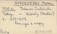 M. S. i W. M. [SOKOŁOWSKI Marian] MILESKI, Witold. ; 1931 b Nowe filmy z Tatr i Podhala.