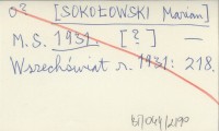 M. S. [SOKOŁOWSKI Marian] 1931 [?]