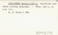 SOKOŁOWSKI Marian 1933 a Społeczne wartości ochrony przyrody.