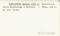 SOKOŁOWSKI Marian 1933 c Realizacja Parku Narodowego w Tatrach.