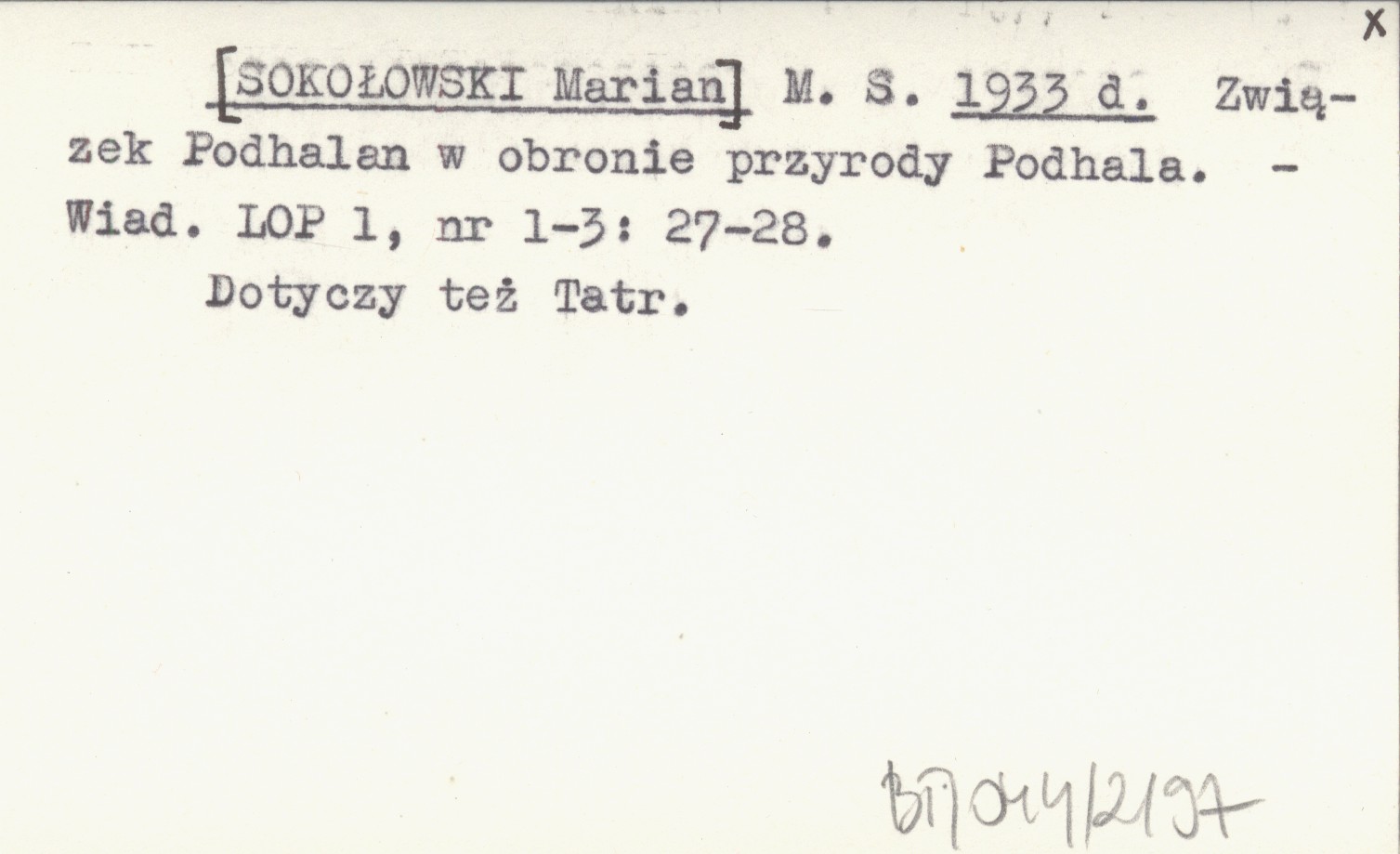 M. S. [SOKOŁOWSKI Marian] 1933 d Związek Podhalan w obronie przyrody Podhala.
