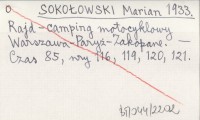 SOKOŁOWSKI Marian 1933 Rajd-camping motocyklowy Warszawa-Paryż-Zakopane.