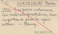 SOKOŁOWSKI Marian 1933 Les parcs nationaux, les resérves forestiéres, leur importance pour la sylviculture.