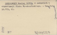SOKOŁOWSKI Marjan 1936 a O zadaniach i organizacji Klubu Wysokogórskiego.