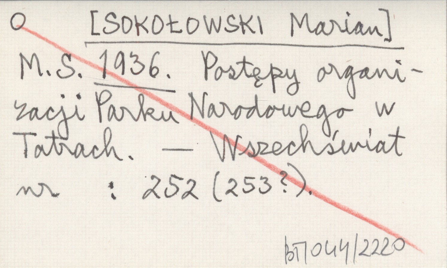 M. S. [SOKOŁOWSKI Marian] 1936 Postępy organizacji Parku Narodowego w Tatrach.