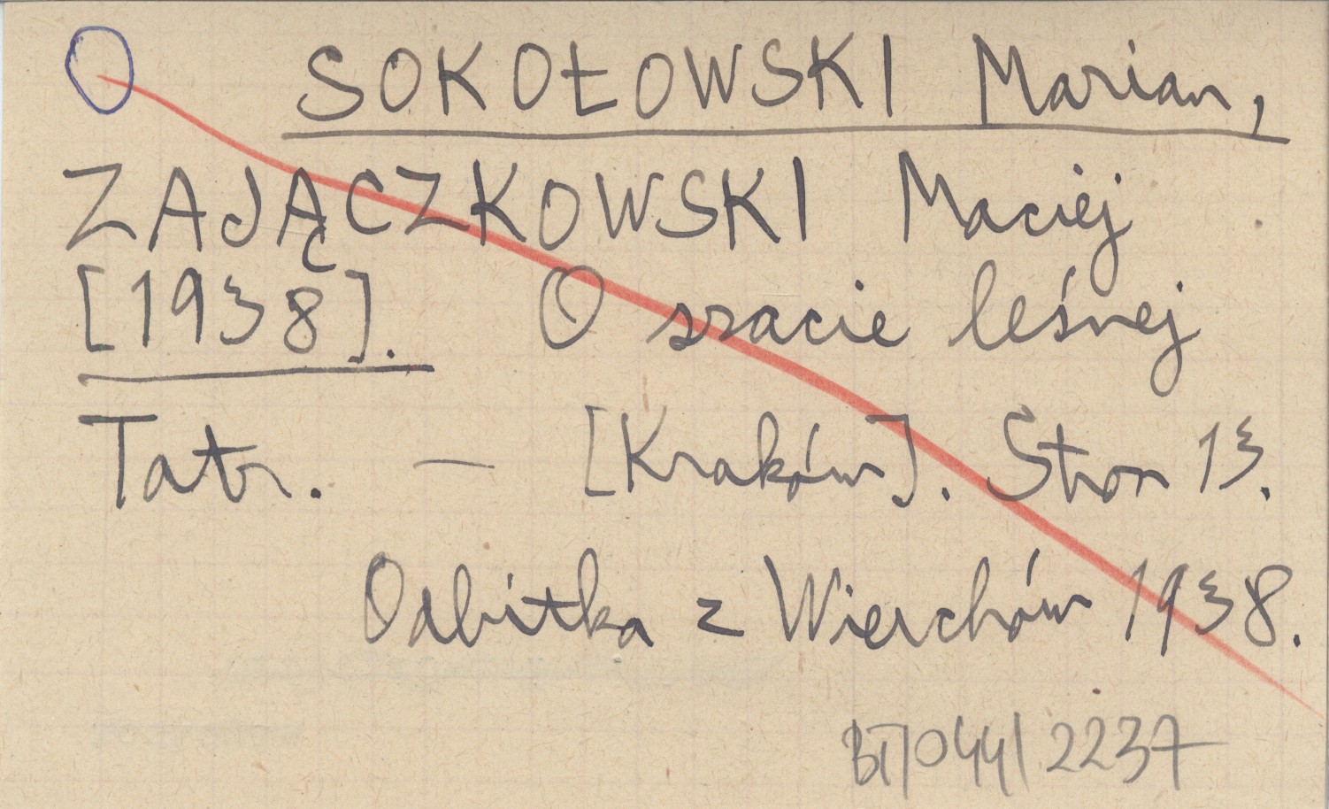 SOKOŁOWSKI Marian ZAJĄCZKOWSKI, Maciej. ; [1938] O szacie leśnej Tatr.