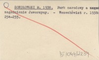 SOKOŁOWSKI M. 1938 Park narodowy a zagadnienie Jaworzyny.
