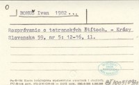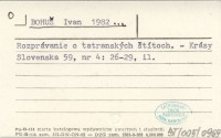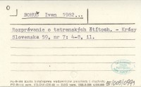 BOHUŠ Ivan 1982... Rozprávanie o tatranských štítoch.