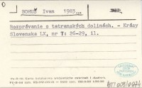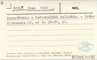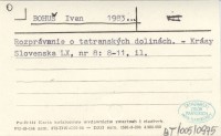 BOHUŠ Ivan 1983... Rozprávanie o tatranských dolinách.