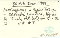BOHUS Ivan 1994 Szontaghovci a Vysoké Tatry.