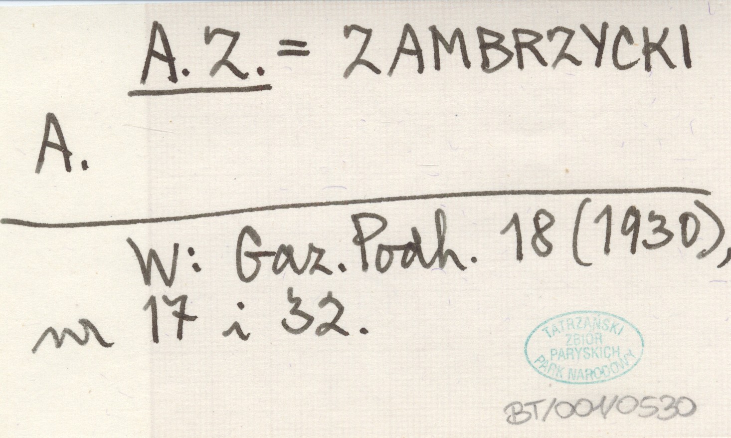 A. Z. ZAMBRZYCKI A. Gazeta Podhalańska 18 (1930), nr 17 i 32.