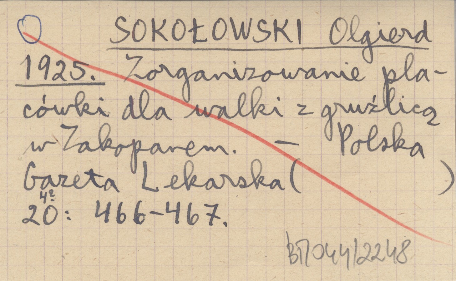 SOKOŁOWSKI Olgierd 1925 Zorganizowanie placówki dla walki w gruźlicą w Zakopanem.