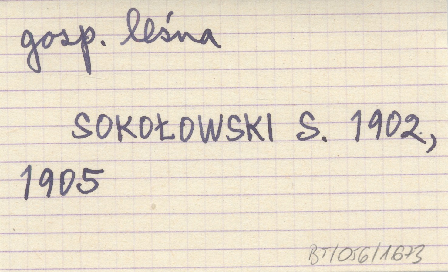 SOKOŁOWSKI Stanisław 1905 W sprawie lasów czystych i mieszanych.