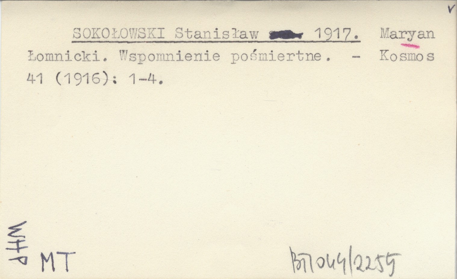 SOKOŁOWSKI Stanisław 1917 Maryan Łomnicki. Wspomnienie pośmiertne.