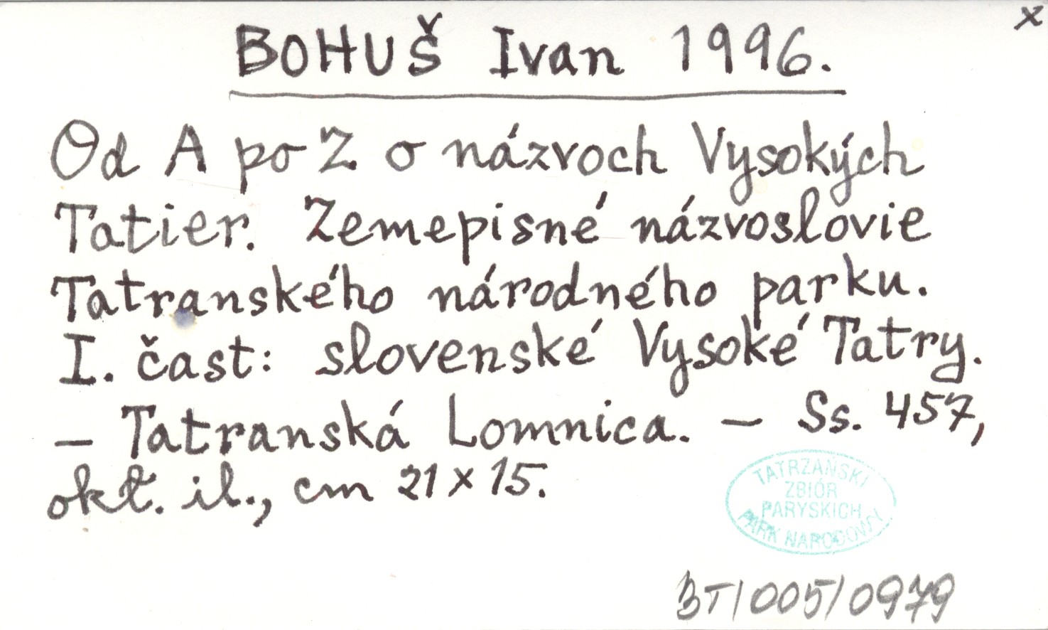Od A po Z o názvoch Vysokých Tatier. Zemepisné názvoslovie Tatranského národného parku. I. čast: slovenské Vysoké Tatry.