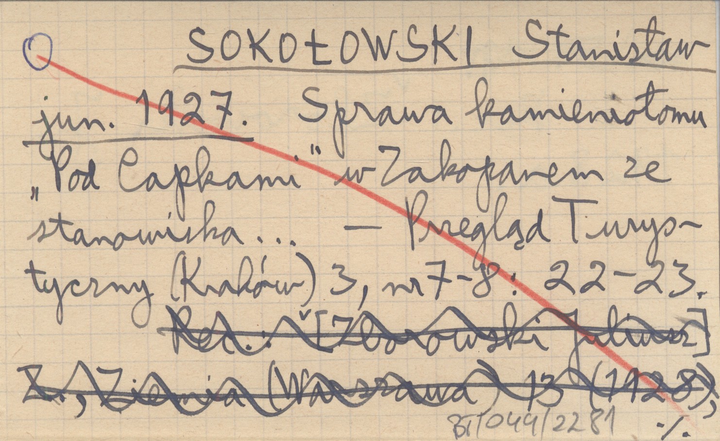 SOKOŁOWSKI Stanisław jun. 1927 Sprawa kamieniołomu "Pod Capkami" w Zakopanem ze stanowiska...