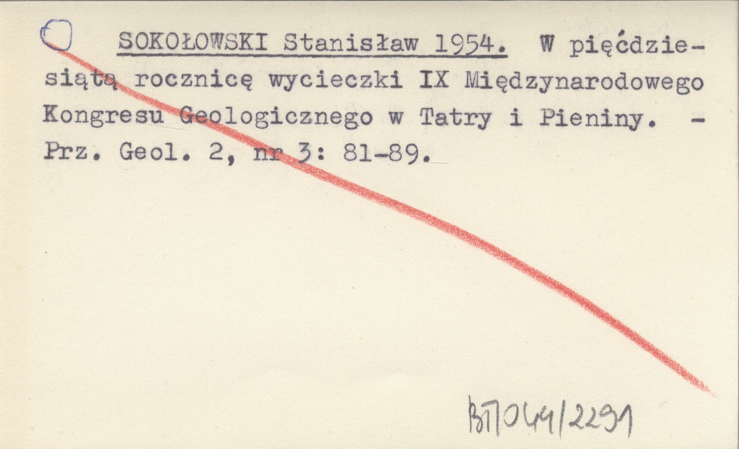 SOKOŁOWSKI Stanisław 1954 W pięćdziesiątą rocznicę wycieczki IX Międzynarodowego Kongresu Geologicznego w Tatry i Pieniny.