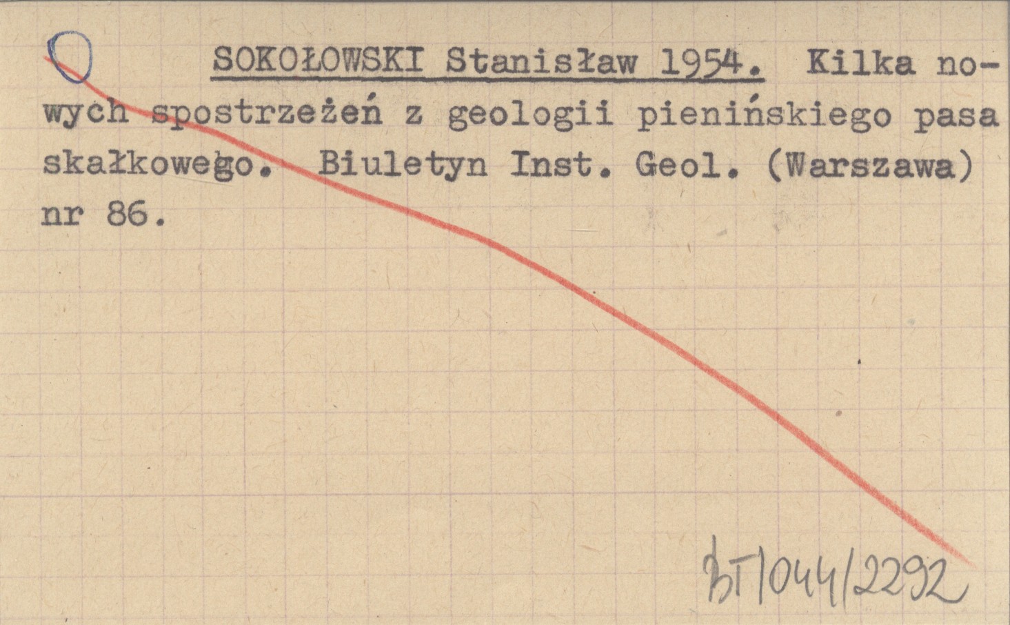 SOKOŁOWSKI Stanisław 1954 Kilka nowych spostrzeżeń z geologii pienińskiego pasa skałkowego.