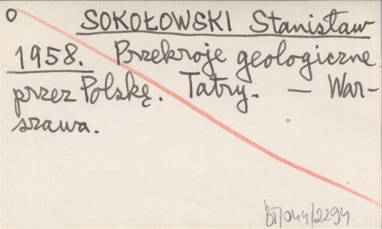 SOKOŁOWSKI Stanisław 1958 Przekroje geologiczne przez Polskę. Tatry.