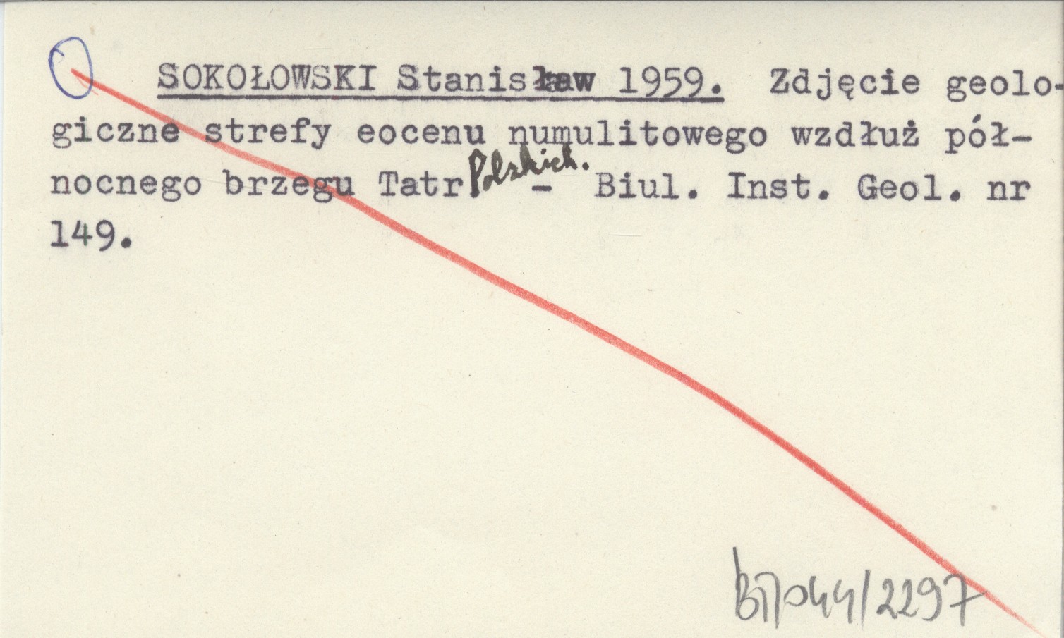 SOKOŁOWSKI Stanisław 1959 Zdjęcia geologiczne strefy eocenu numulitowego wzdłuż północnego brzegu Tatr Polskich.