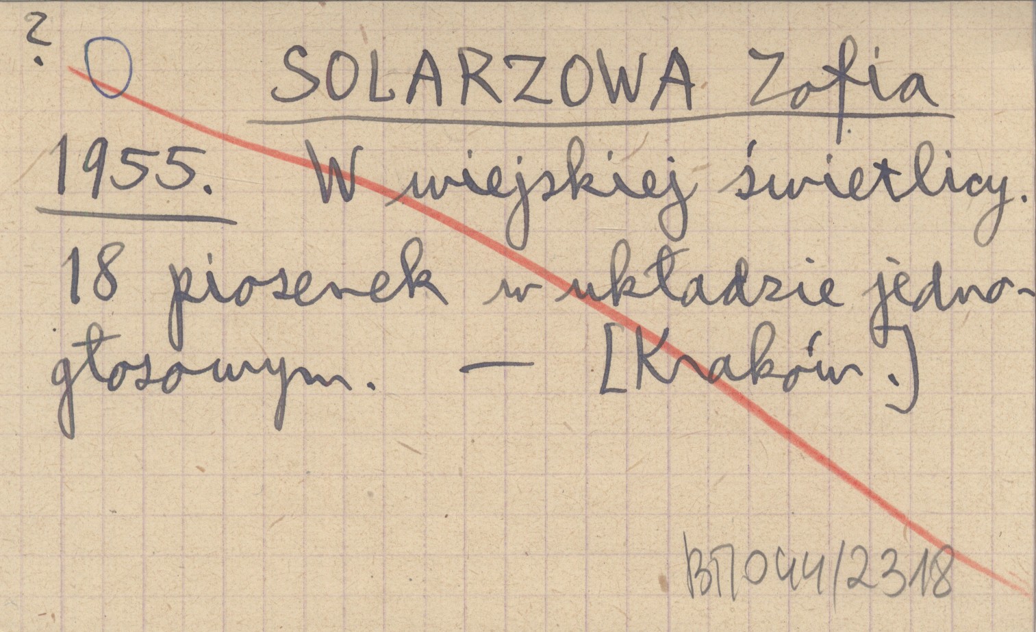 SOLARZOWA Zofia 1955 W wiejskiej świetlicy. 18 piosenek w układzie jednogłosowym.