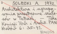 SOLECKI A. 1972 Architektura i ugrupowania przestrzenne szałasów w Tatrach.
