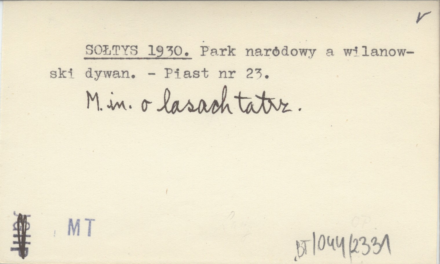 M. in. o lasach tatrzańskich.