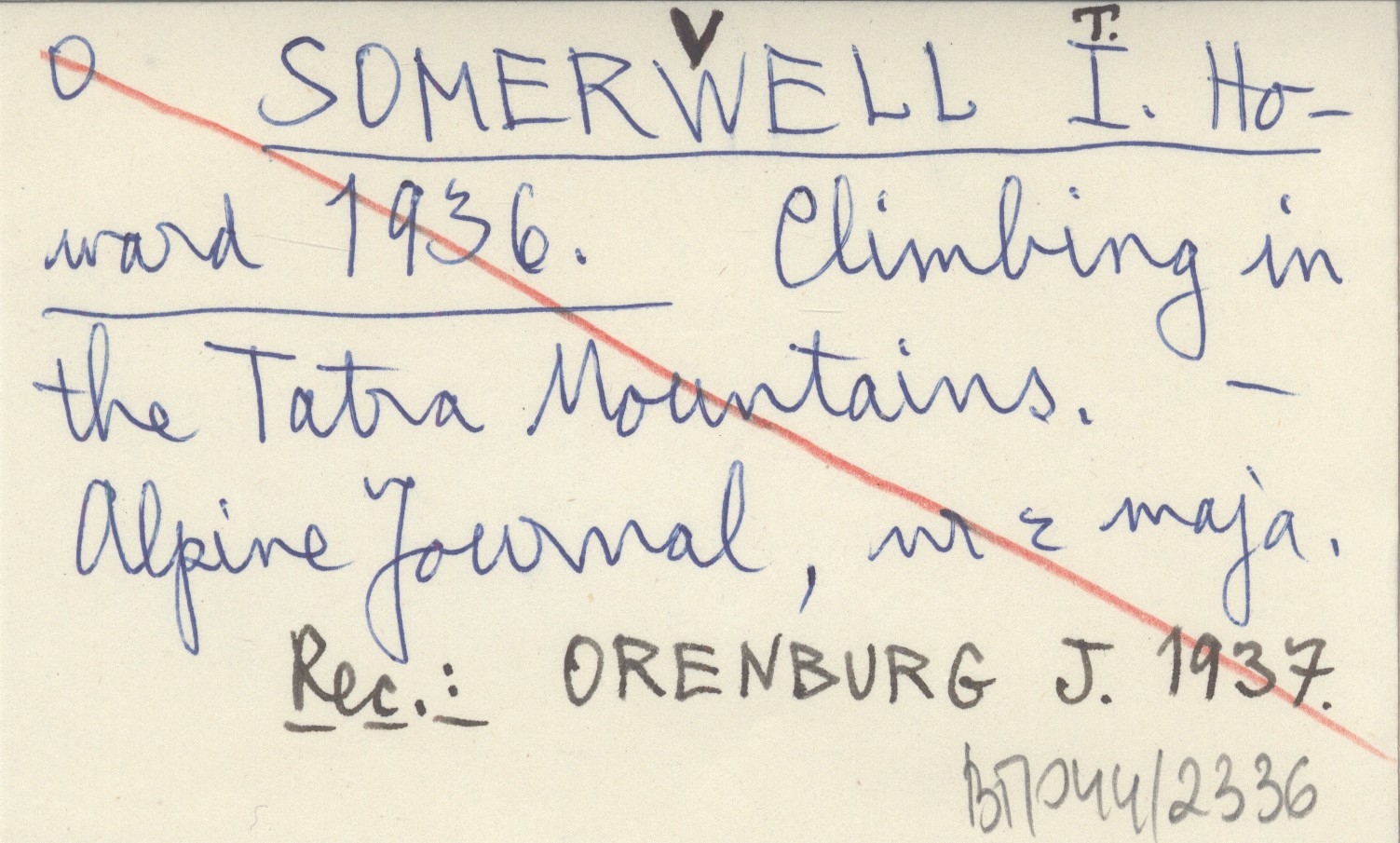SOMERWELL I. Howard 1936 Climbing in the Tatra Mountains.